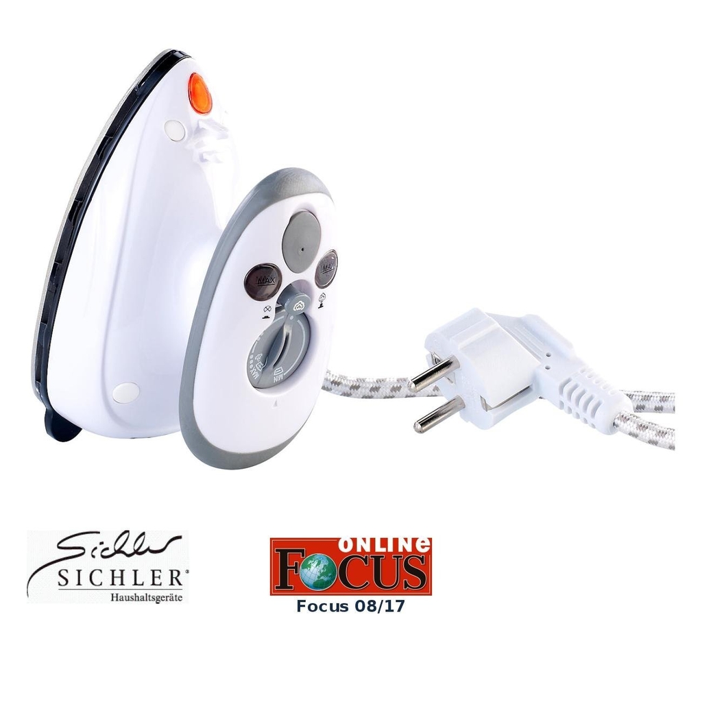 Bàn là hơi nước du lịch Sichler có 3 chế độ cài đặt nhiệt độ cho vải bông, vải lanh, tơ tằm, vải tổng hợp và cho len.